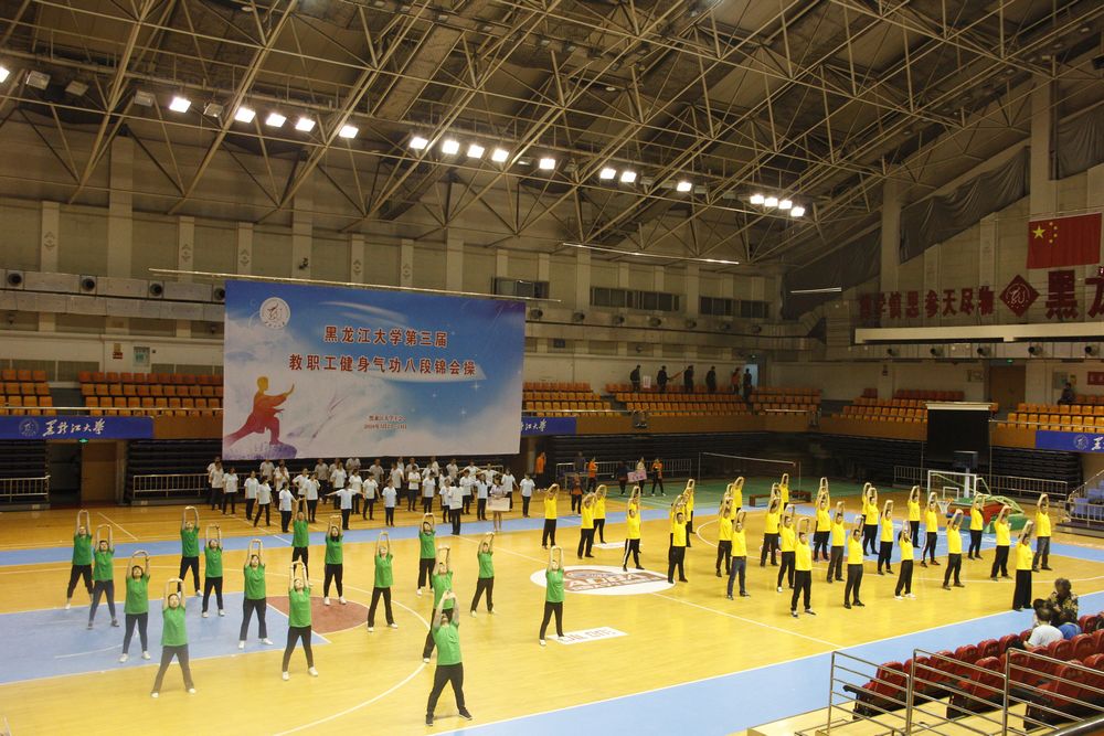 比賽正式開始,在23、24日兩天比賽中,共有30個代表隊,總計1000多人參加。各參賽隊伍動作沉穩、柔和緩慢,圓活連貫,動靜相兼,氣機流暢,展現出八段錦獨有的靜態魅力,更彰顯了我校教職工積極向上的精神面貌。