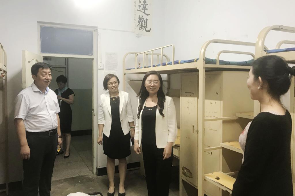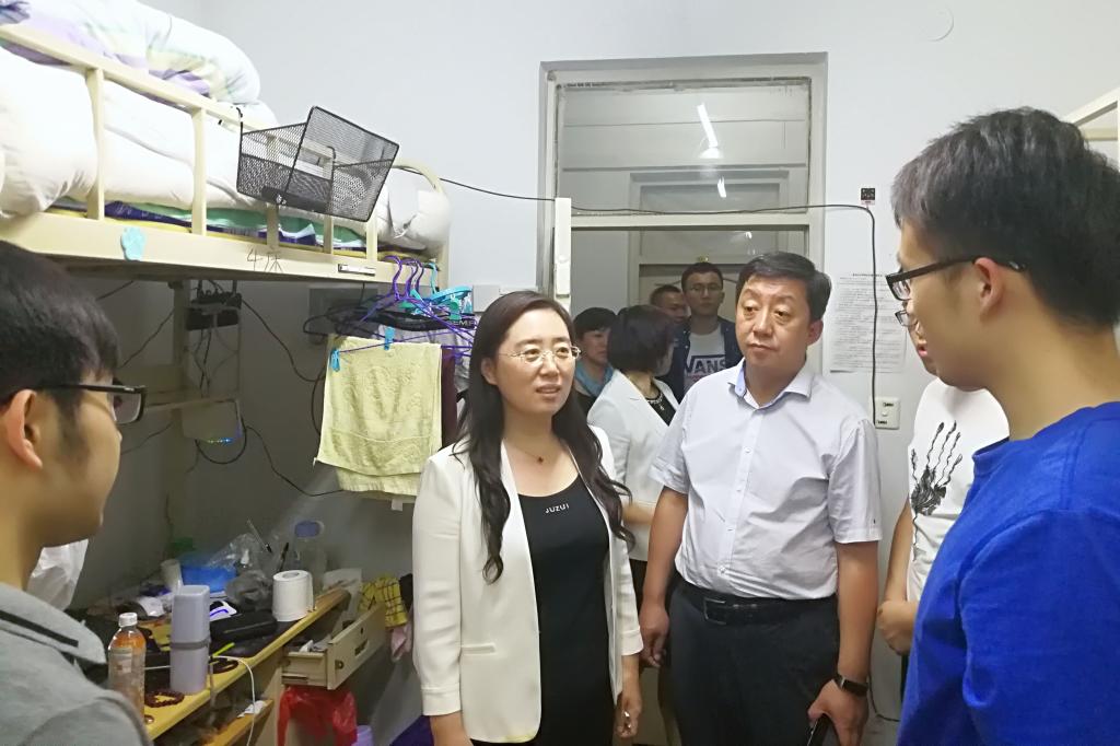 在各公寓值班室,丁書記看望了一直堅守在畢業生離校值班第一線的全體學生政工干部,并與他們親切交談,詳細了解畢業生離校的工作動態。她指出,在學校各相關部門特別是全體學生政工干部的共同努力下,目前離校氛圍很好,畢業生思想穩定,校園秩序井然,這與前期大家細致的思想教育、“上車餃子”等溫情服務、加強值班值宿等卓有成效的工作密不可分。她強調,從現在開始畢業生就要陸續離校,大家在白天做好相關工作的前提下,要克服困難,再接再厲,充分利用晚上值班的時間多深入學生中去,了解和把握好畢業生思想動態,有針對性地做好引導和服務工作,確保實現畢業生平安離校、文明離校、舒心離校。