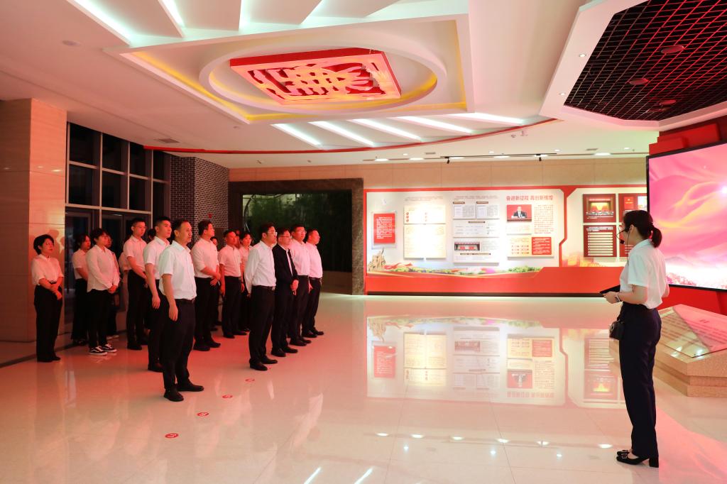 參觀結束后,全體黨員干部面向黨旗,重溫入黨誓詞。(攝影 孫晟偉)