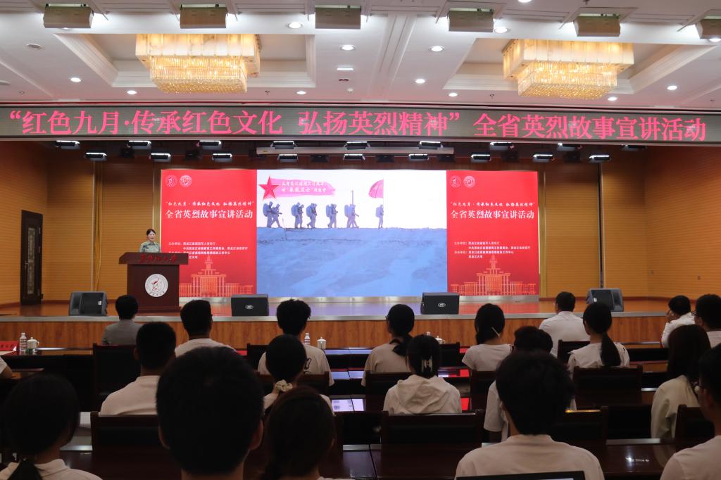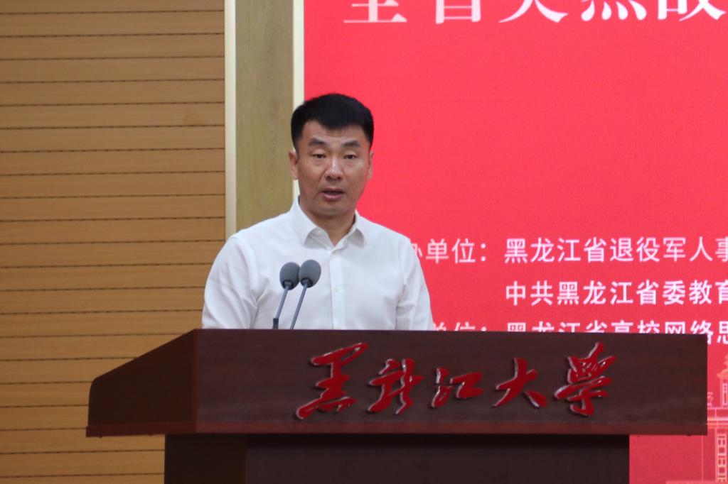 9月3日上午,由黑龍江省退役軍人事務廳、中共黑龍江省委教育工作委員會、黑龍江省教育廳主辦,黑龍江省高校網絡思想政治工作中心、黑龍江大學承辦的“紅色九月·傳承紅色文化 弘揚英烈精神”全省英烈故事宣講活動在黑龍江大學主樓一樓報告廳舉行。黑龍江省退役軍人事務廳黨組成員、副廳長王東平,黑龍江大學黨委副書記李君明出席,省退役軍人事務廳優待撫恤處、黑龍江大學相關部門主要負責人,大慶市、雞西市、牡丹江市、綏化市、望奎縣、綏棱縣退役軍人事務局相關代表參加。本次宣講活動通過“龍江高校網絡思政中心”微信視頻號進行同步直播。