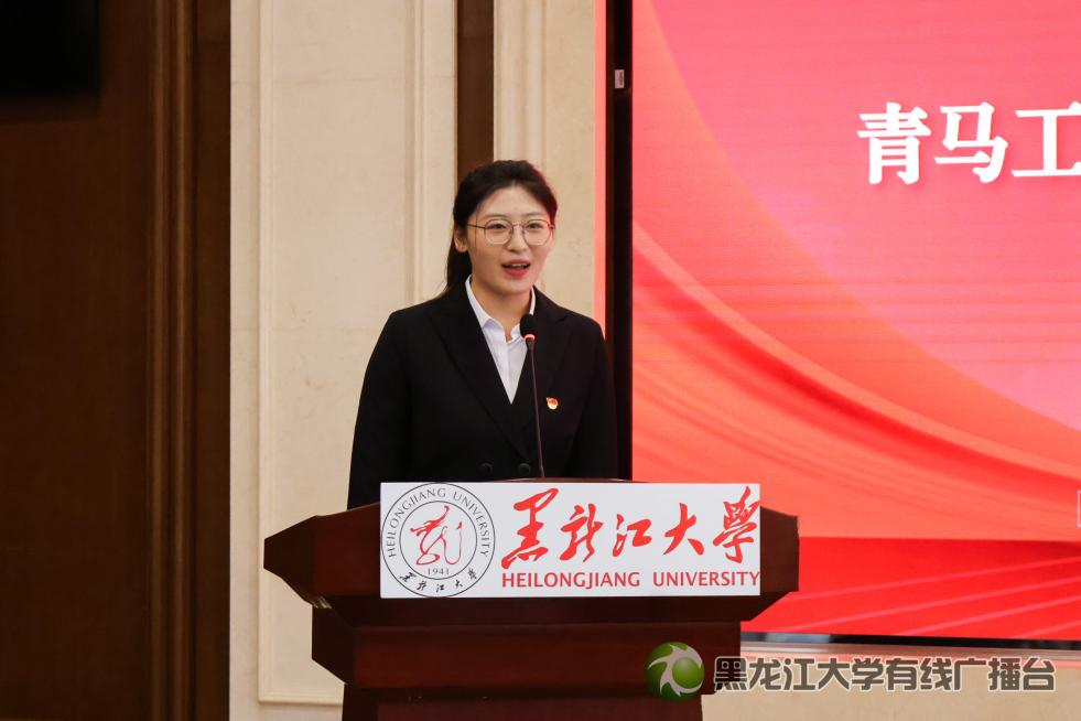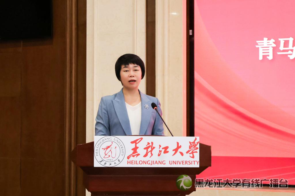 校黨委副書記劉鳳影為第十期“黑大菁英”大學生骨干培訓班學員代表授旗并講話。她對第九期“黑大菁英”大學生骨干培訓班取得的豐碩成果表示了肯定,并對入選第十期培訓班的同學表示祝賀。她表示,青馬工程“黑大菁英”大學生骨干培訓班是我校認真貫徹落實團中央關于深入實施好青年馬克思主義者培養工程的具體行動。她希望同學們要筑牢信仰根基,把握人生航向;要勤學修德明辨,夯實成才基礎;要篤行時代擔當,勇擔時代重任。努力提高政治覺悟、道德修養、知識涵養、實踐素養,以實際行動踐行“請黨放心,強國有我”的莊嚴承諾,充分展現新時代黑大青年昂揚向上的精神面貌。
