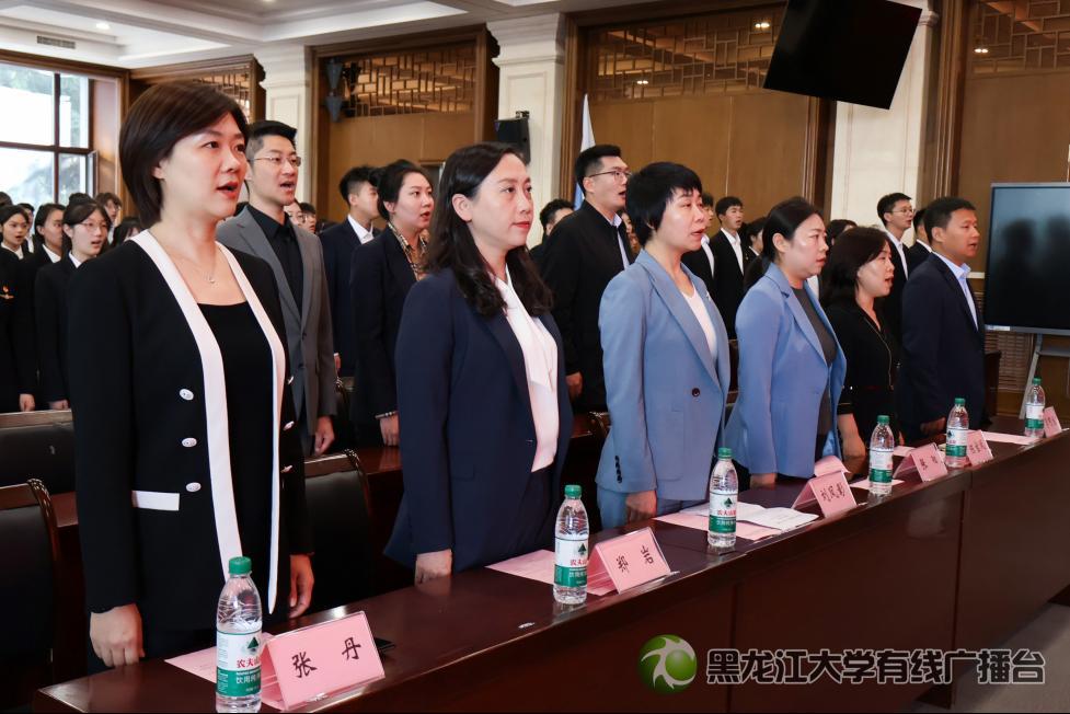 第九期“黑大菁英”大學生骨干培訓班學員代表劉宇歡發言,她回顧了一年以來的收獲與成長,感謝各位老師的辛勤培育,并將繼續堅定理想信念,在實踐中錘煉自我。黑龍江省第十七期“青馬工程”優秀學員馬銘澤發言,他鼓勵學弟學妹們以馬克思主義信仰筑牢精神根基,在時代浪潮中堅定方向、勇擔使命。第十期“黑大菁英”大學生骨干培訓班學員代表馬悅發言,她表達了對此次學習的期待,并代表學員鄭重承諾,以奮斗之姿早日成長為一名合格的青年馬克思主義者。