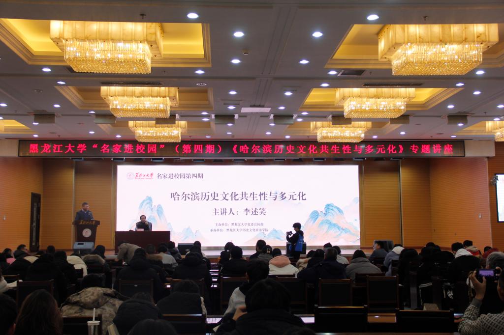 12月12日晚,我校在主樓一樓報告廳舉辦“名家進校園”第四期《哈爾濱歷史文化共生性與多元性》專題講座,由李述笑擔任主講人。哈爾濱市文物館館長楊偉東,校宣傳部、歷史文化旅游學院及藝術學院師生代表講座。講座由黨委常委、宣傳部部長楊其濱主持。