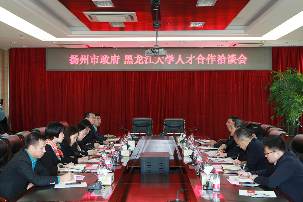 丁宏副書記代表我校對揚州市副市長韓驊一行的到來表示熱烈歡迎,對揚州市多年來在就業(yè)工作方面給予我校的關心和支持表示衷心感謝。丁宏副書記介紹了我校的歷史沿革、學科概況、辦學特色、畢業(yè)生就業(yè)情況等,回顧了我校與江蘇省、揚州市的發(fā)展淵源,希望更多黑大學子了解揚州,走進揚州,助力揚州發(fā)展,未來雙方可以在科技與產(chǎn)學研合作、人才合作方面有進一步發(fā)展,尤其是在學生就業(yè)方面能有更多合作成果。