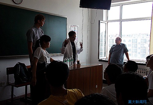 為進一步明確和落實此次會議的內容,加強兩校間的務實合作,6月25日,俄羅斯新西伯利亞國立大學外事處長Е?И?薩蓋達科率該校六個系負責人以及遠程教育平臺建設專家一行14人對我校進行了回訪。張政文校長、張曉光校長助理及教務處、研究生學院、中俄學院、化學化工與材料學院、生命科學學院、數學科學學院、經濟與工商管理學院、法學院、物理科學學院領導接待俄方代表團,并就中俄學院本科生聯合培養工作以及派遣教師來華授課的具體細節問題進行了會談,會談中雙方確定了最終的聯合培養方案、第四學期俄方派遣教師時間表、講授課程的考試問題、遠程教育平臺的使用、各個專業合編教材的編寫原則、內容等問題,明確了俄方教師在華培訓時間、周期及考試方式,初步確定了合編教材的名稱和工作進度。此外,俄方代表團還與中俄學院學生進行了座談,就專業課的學習內容與學生進行了溝通。
