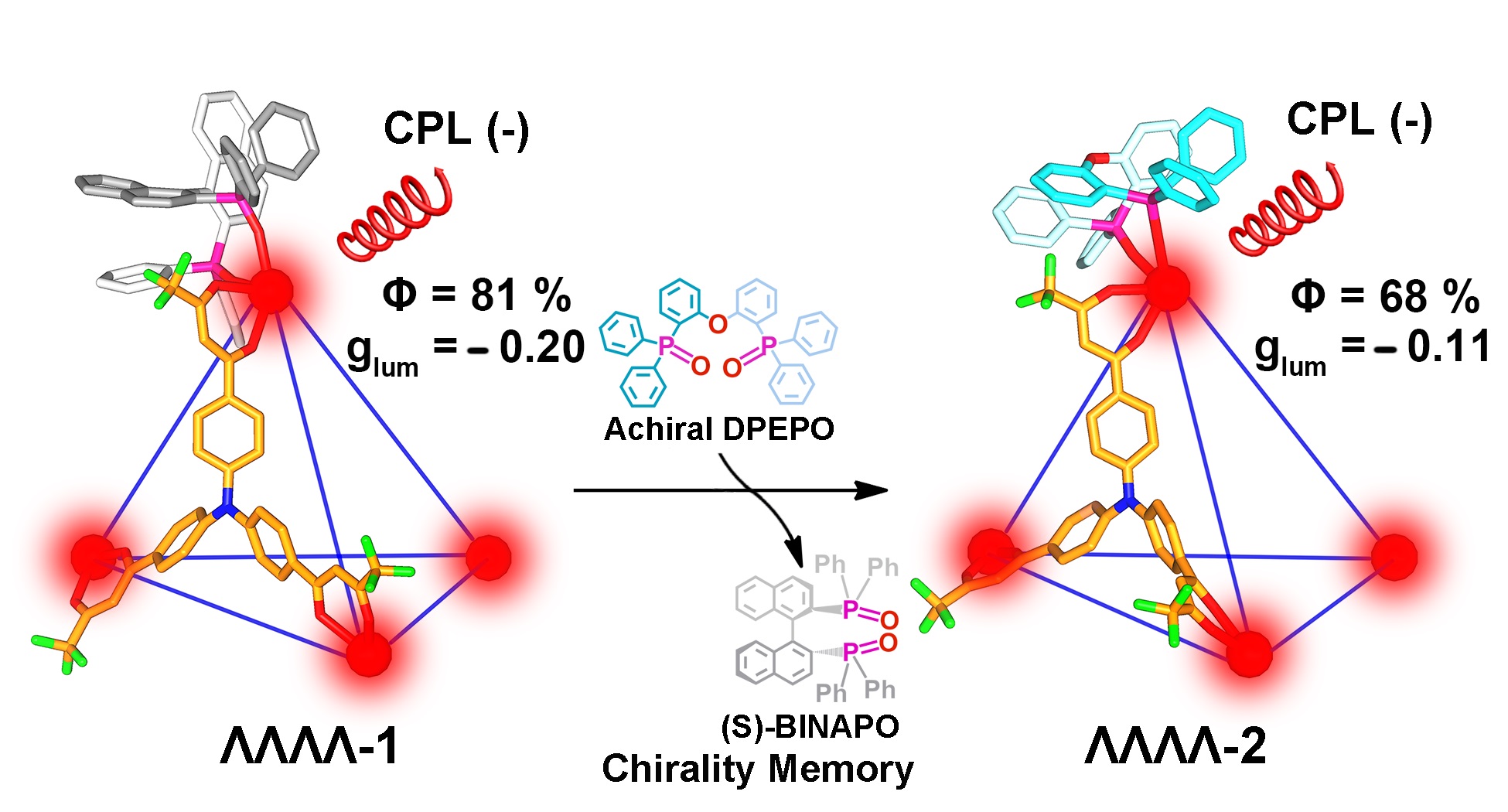 圖1.手性稀土四面體籠的手性記憶效應和圓偏振發光