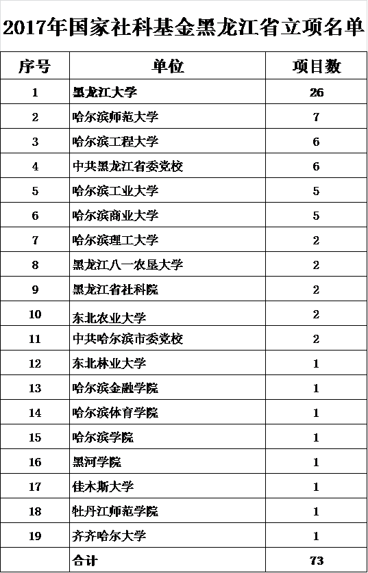 2017年國(guó)家社科基金黑龍江省各單位立項(xiàng)名單: