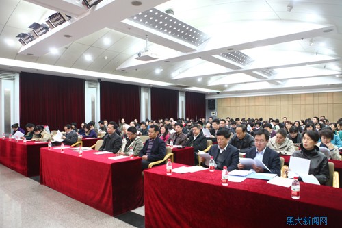 隨后,丁立群副校長總結了我校“十一五”以來的文科科研工作及社會科學研究的總體情況,指出了目前存在的問題,重點介紹了我校制定的哲學社會科學繁榮計劃。他表示,“十一五”期間,我校社會科學研究工作取得了較大成績,學校總體實力和競爭力得到了很大提升,為進一步發展哲學社會科學奠定了堅實的基礎,但同時,我校還存在各學科科研發展不平衡,科研后備人員的培養力度需要加大,還沒有很好地形成合力及團隊研究聯合攻關之勢,高水平的研究精品、高層次項目的數量還需要提升等問題。對此,學校制定了《黑龍江大學哲學社會科學繁榮計劃》(2011—2020年),丁立群副校長對其中的總體思路、建設目標、具體計劃等進行了全面、細致地解讀。